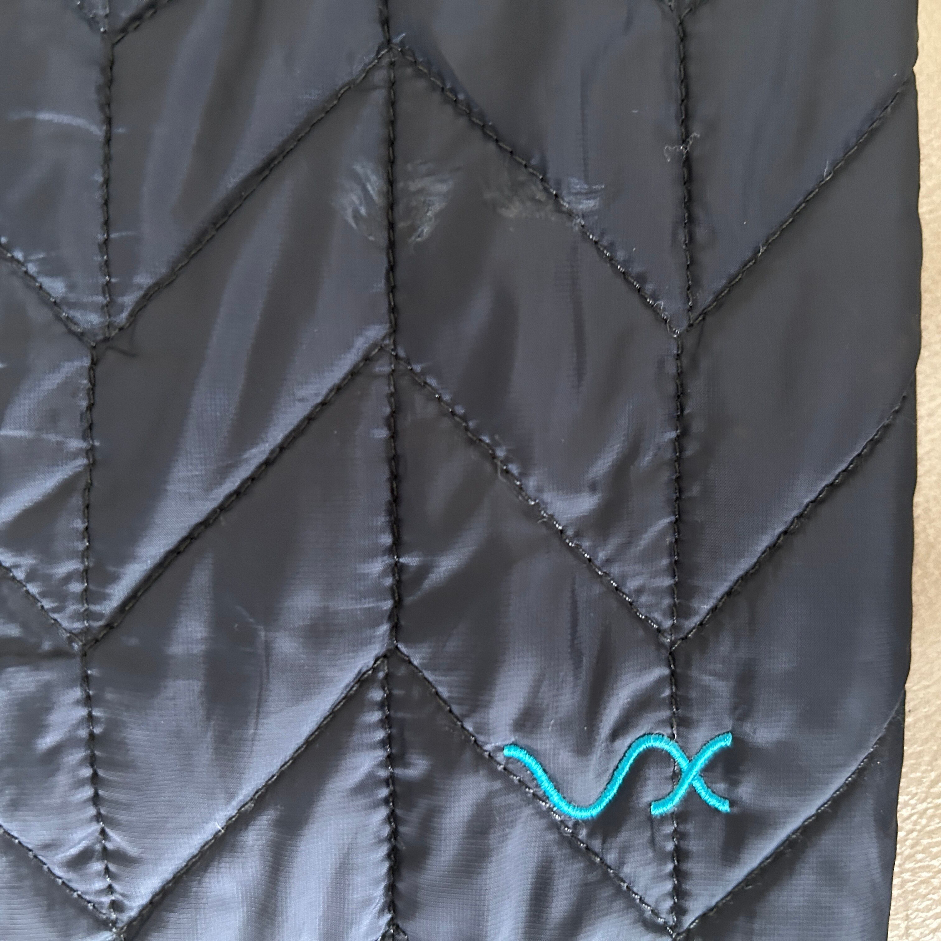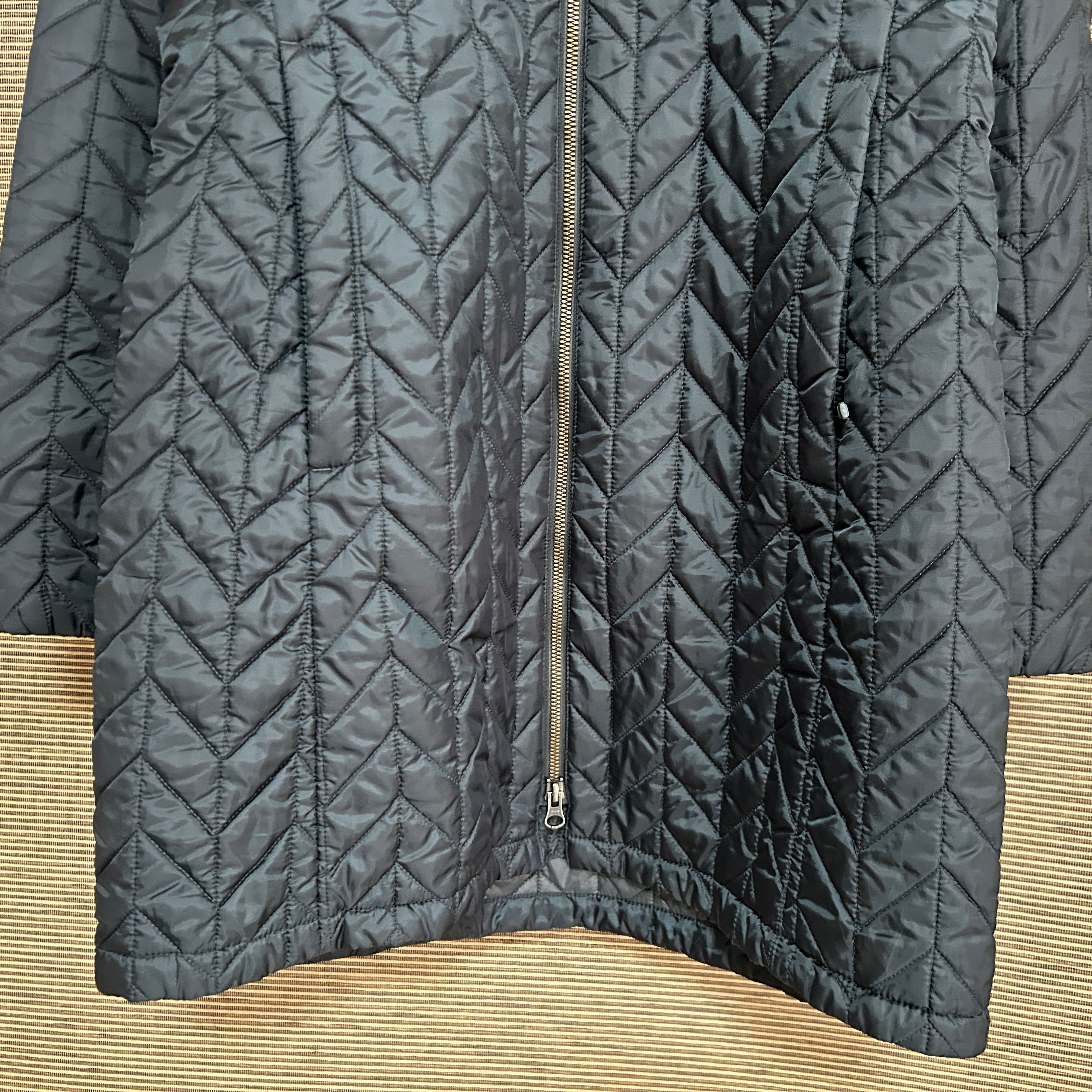 ノースフェイス 中綿ロングコート ネイビー VX カーキ刺繍 ワンポイントC3 古着 レディース 袖ロゴ